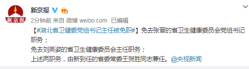 原标题:湖北省卫健委党组书记主任被免职