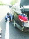 货车高速路漏铁屑致上百辆车轮胎被戳(组图)