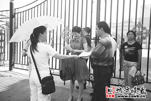 抓住中考商机,商家忙着发广告 景泽/摄 ■记者 佳雪/报道 本报讯 昨日是长春市2007年中考第二天,由于两日来长春市区持续高温,长春市各考点纷纷采取相关避暑措施,保障考生顺利参加考试。今日,随着英语和汉语文两科目考试的结束,2007年中考将全部结束。 更多人性化举措 为中考考生降温 考生可先进入考点避暑;在考场内放置凉水和冰块降温;考场内打开风扇调节高温;考生可携带药物以备不时之需……为了避免考生中暑,以更加充沛的精力参加考试,昨日,长春市区各考点纷纷推出更多人性化规定,给紧张的中考带来一丝清凉。记者在九十七中考点看到,一些考生将浸水的毛巾和防中暑的药品带进了考场,以防止因中暑而影响考试。与中考首日比,昨日,带水进入考场的考生增加了很多,考点负责人在对饮品的包装进行拆卸后,全部允许考生带入。 考场外家长少了 商家多了 昨天,记者在长春市区内各考点看到,和中考首日相比,考场外陪考的家长明显少了,直到临近考试结束,才有大批家长赶来接孩子。虽说考场外少了家长,却多了一些商家。各考点外都有不少的教育培训机构和商家忙着向家长散发广告,广告上刊载的多是出国留学、英语培训、夏令营等内容。记者在四十八中学门口呆了不到10分钟,就接到了六七份传单,还有不少矿泉水、冷饮和扇子等各式各样的赠品。 试题难度适中 学生感觉很轻松 昨天上午10时30分,数学考试结束后,记者在长春市九十七中学考点随机采访了几位考生,他们普遍感觉数学考试难度适中。一名姓张的考生告诉记者:“时间上没问题,足够用了。”另外一名考生也表示,他的数学在几门课里面相对较弱,但时间也够用了,总的来说自我感觉还不错。 外语听力考两次 取分数高的作为成绩 今日,将进行英语和汉语文最后两科的考试。今年,长春市中考外语听力考试首次实行两次考试,第一次考试时间为今日上午8:30-9:00,第二次听力考试时间为11:00-11:30。考试时间为25分钟,使用两套试题,两次听力考试取分数高的一次作为考生的外语听力成绩。