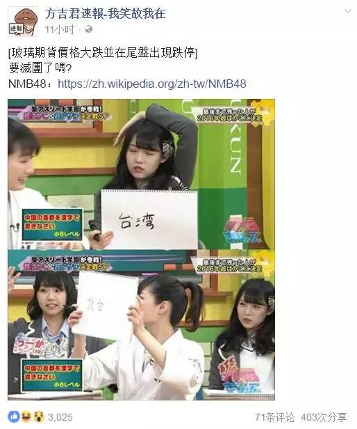 原标题:恕我无知,日本女团说“中国首都是台湾”,台湾网友high什么呢?