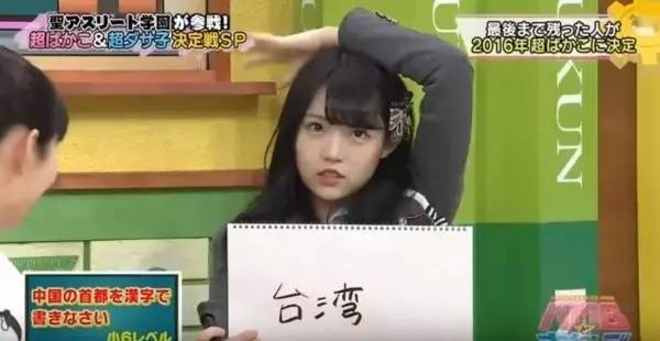 12月22日,在日本西电视台一档名为《NMB和学习君》节目中,主持人要求该女团成员“用汉字写出中国首都在哪里”,这一环节是评选年度“笨蛋代表”,答对的人就可以顺利逃出。