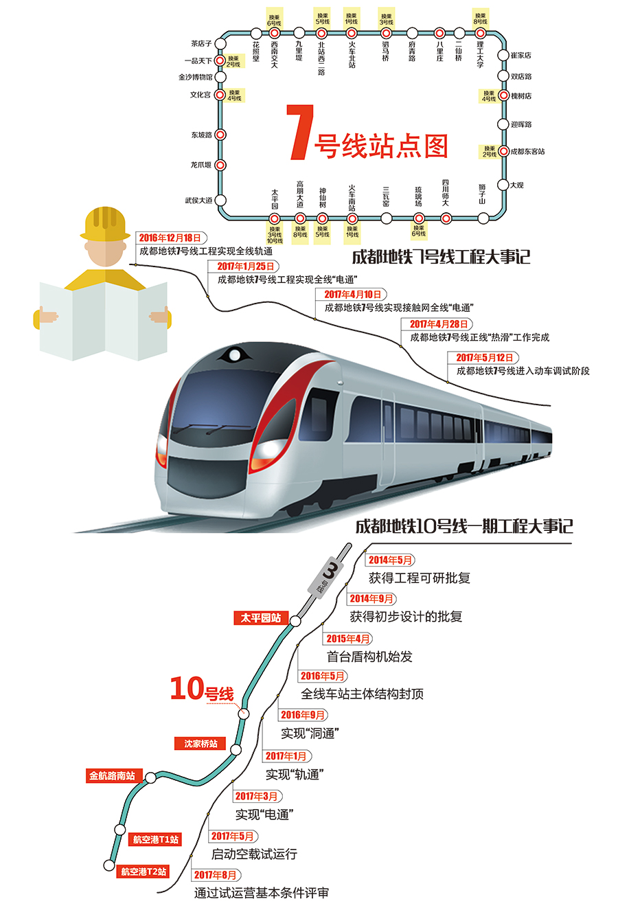 除了即将开通的地铁10号线一期工程,今年内成都还将开通地铁7号线。作为成都地铁的第一条环线,7号线还是国内首条一次性开通的环线地铁线。