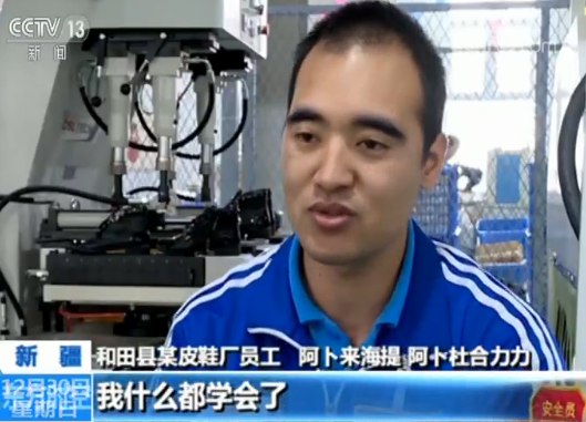 于田县的艾力江每个月2800元的收入可以保证全家在今年年底前脱贫,而和田县的阿卜来海提经过三个月的技能培训,如今也已经成为一家皮鞋厂的技术骨干。