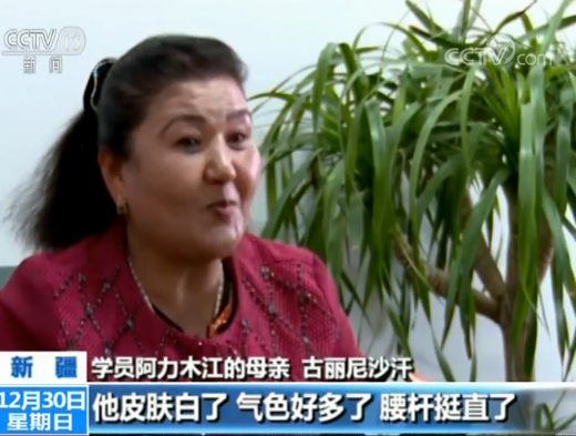 阿力木江的妈妈 古丽尼沙汗:一个月以后再见到儿子,他皮肤白了,气色好多了,腰杆挺直了。之前有点驼背,差点没认出来,以前他身体挺单薄,现在变得非常高大,差点没认出来。