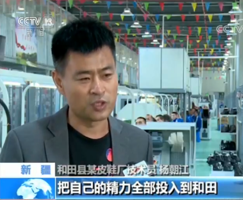 和田县职业技能培训中心皮鞋厂技术员 杨朝江:我们能感受到他们也是一样,他们的工作努力,所以我就义无反顾地下定决心带着我们的团队,把这个事做好,把自己的精力全部投入到和田。