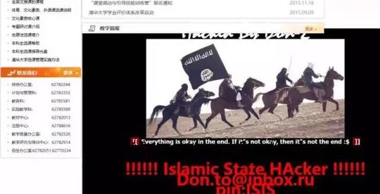 1月17日晚10时左右,清华大学教学门户遭受黑客攻击。部分页面点击后伴有音乐,内容为阿拉伯伊斯兰教经文,大意为“真主伟大,我不惧死亡,牺牲是我最终的目标”。事件发生后,清华大学迅速关闭了服务器,阻止进一步传播。