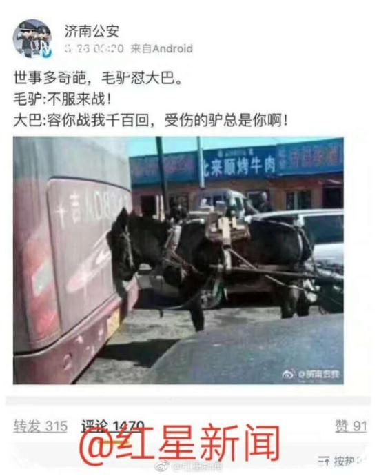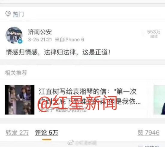[济南公安怼网友?已展开调查]山东“辱母案”经媒体报道后,引发舆论广泛关注。刺死辱母者于欢一审被判无期徒刑,成为本案最大争议。 昨晚21:21,济南市公安局官方微博@济南公安 发布“情感归情感,法律归法律,这是正道!”,疑对聊城“辱母案”发酵后的舆论进行点评,但引来众多网友抨击。今晨,该官微再次发布“世事多奇葩,毛驴怼大巴。”等言论,疑似怒怼网友,但相关内容很快被删除。刚刚,济南市公安局工作人员告诉红星新闻,从昨晚开始就不断有人对官微进行投诉,“微博内容确实由管理者发布,目前已经展开调查,稍后会对网友作出解释。”