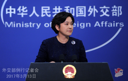 原标题:2017年3月13日外交部发言人华春莹主持例行记者会