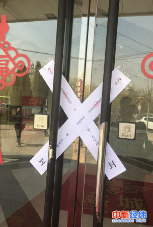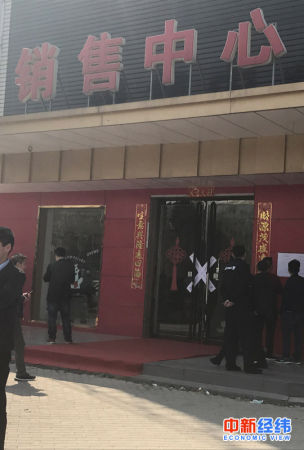 雄县鑫城小区售楼处,4月2日已被贴封条。中新经纬 刘雪玉摄