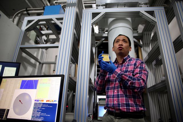 “我们这里的单光子目前在国际上综合性能最优,全同性比率达到99.5%,效率比国际上第二名高10倍以上。这是由于我们在2013年创新了一种激发方法,可以大幅度降低噪音。之前国外技术产生的单光子就好像一对玩了泥巴的双胞胎,你可以通过他们身上的泥巴区分他们,而我们制造出的光子就像把双胞胎洗得干干净净,你就分辨不出他们了。”陆朝阳说。