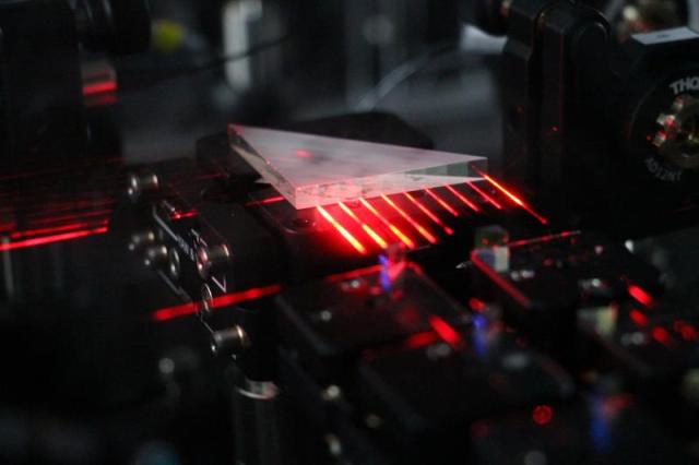 这些光子在实验台上的镜片间跑来跑去,经过10多个波片,改变了偏振信息后被导入一个关键器件——多路分束器,它相当于这台光量子计算机的CPU。在这里,“巫师们”对光子进行操纵。