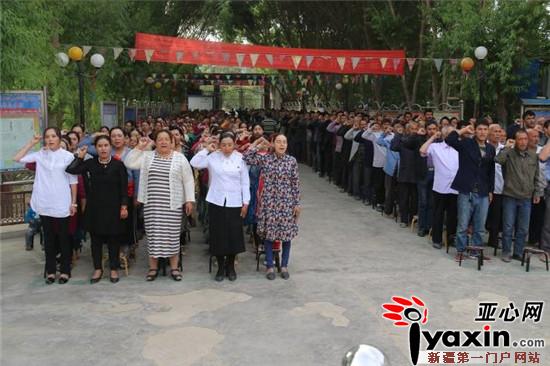 亚心网讯(通讯员 杨峰)5月29日,又是一个周期的清晨,新疆工程学院驻和田市吉亚乡“艾德莱斯村”工作队全体驻村工作队成员、全体村干部、包村干部、村警、协警、驻寺管寺干部和我村各族党员干部群众在村委会大院举行了隆重而又庄严的升旗仪式。村第一书记阿布都克依木·托合提同志宣布升旗仪式正式开始,早晨9点整,全体干部和群众脱帽、行注目礼。迎着朝阳,村民国旗护卫队成员着装整齐、迈着铿锵的步伐来到了国旗台下,全场一片肃静。在激昂的《义勇军进行曲》歌声中,升旗手振臂一挥,鲜艳的五星红旗徐徐展开,在初升的阳光映照下,全体村民的注目中,迎着初升的太阳,在晨曦中迎风飘扬在村委会的上空。