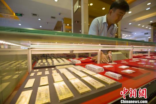 山西太原,金店工作人员正在清点金条。 张云 摄