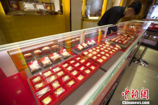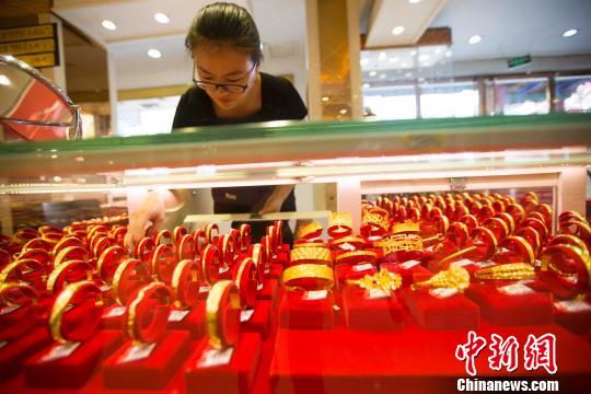山西太原,金店工作人员正在清点黄金手镯。 张云 摄