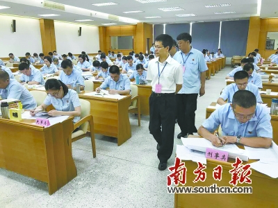汕头中院员额制改革试点经验成为全国典型,图为员额制法官遴选笔试现场。汕头中院供图 |