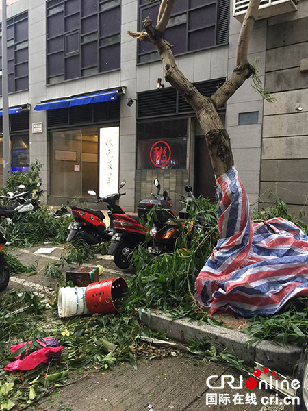 台风“天鸽”袭澳,街道两旁树木、电单车倒塌