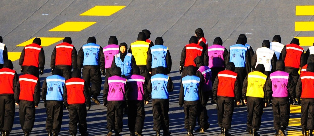 甲板上,身穿红、紫、棕、黄、绿等各色工作服的官兵,目光坚毅、步履沉着。“牢记习主席的嘱托,就是要苦练精练,把训练变成实实在在的战斗力和保障力。”舰长刘喆这样说。