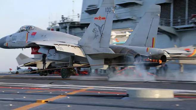 我军飞行员驾驶国产歼-15舰载机首次成功降落航空母舰辽宁舰,一举突破了滑跃起飞、阻拦着舰等飞行关键技术,受到世界空前关注。