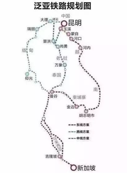 泛亚高铁线路:也就是我们上面提到的,连接东南亚国家,从昆明出发,依次经由越南、柬埔寨、泰国、马来西亚,抵达新加坡。
