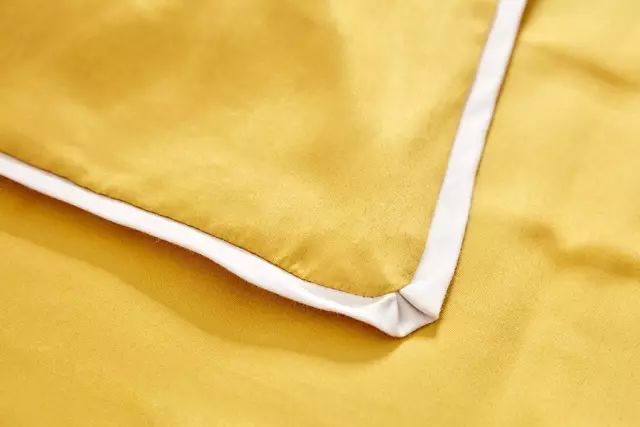四件套的床单是纯色的,被套和枕套的边上有撞色小细条镶边,颜色搭配得特好看,细节感人,扑面而来的雅致,透出传统的、经典的英伦气质。