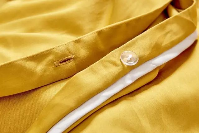 被套开口处有一排透明纽扣,被子很好装进去,系好后看不到扣子,开口处隐形。