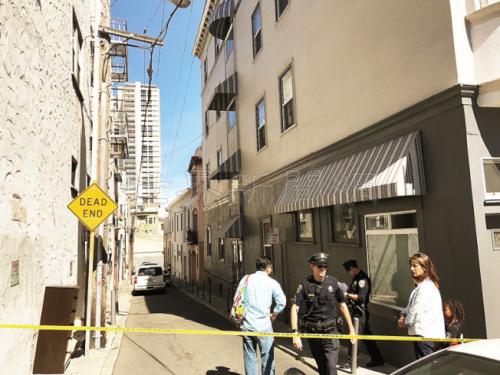 警员开枪事件发生在华埠小巷子。(美国《世界日报》记者李秀兰/摄影)