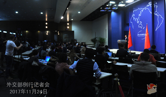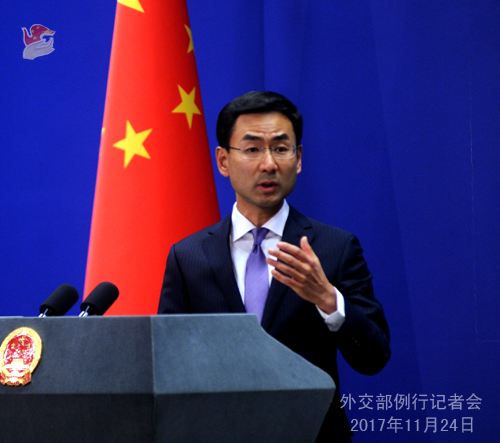 原标题: 2017年11月24日外交部发言人耿爽主持例行记者会