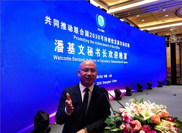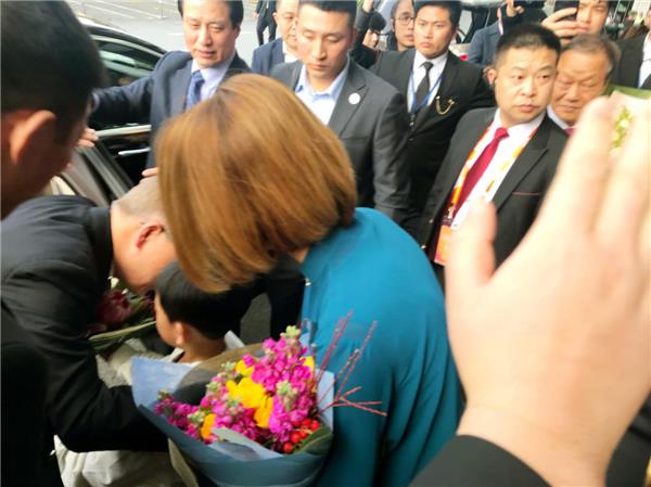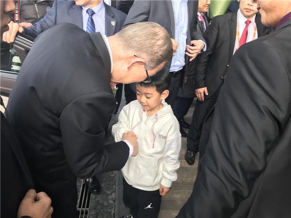 2018年03月10日,联合国前秘书长潘基文在上海接见北京蓝话筒教育集团董事长袁易飞。袁易飞首先代表全国蓝话筒师生欢迎潘基文到上海参加有关活动,潘基文表示感谢并欢迎全国蓝话筒师生到联合国学习参观交流。北京蓝话筒西红门直营校学生袁野向刚抵达会场的联合国前秘书长潘基文献花:“您好,潘爷爷!欢迎您来到中国!”潘基文非常高兴的接受鲜花,俯下身来与袁野握手说:“谢谢,小朋友!”北京蓝话筒直营校学生袁野是本次活动中唯一一个向联合国前秘书长潘基文献花的小朋友,也是我国少儿主持口才表演教育行业首个向联合国前秘书长潘基文献花的小朋友。
