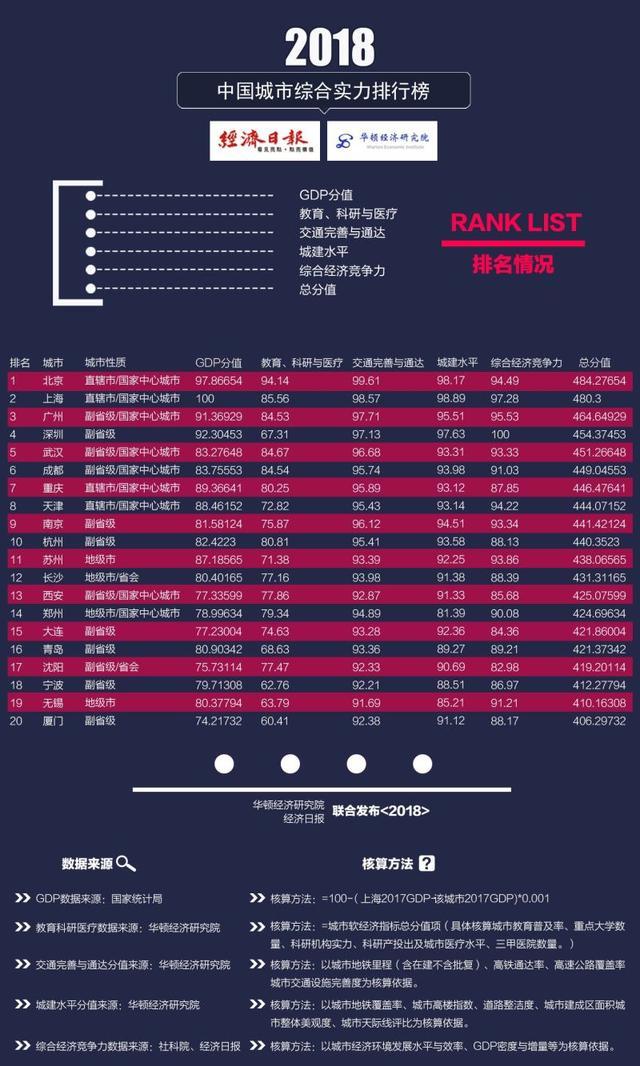 长江日报融媒体10月30日讯(记者 华智超)近日,经济日报与华顿经济研究院联合发布了2018年中国城市综合实力排行榜,引发网友热议。