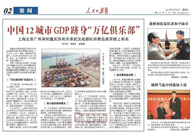 文章指出,2006年,上海成为中国最早突破GDP万亿门槛的城市。很快,2008年,北京跨过门槛;2010年,广州加入这一行列;2011年,深圳、重庆、苏州和天津4个城市一道完成突破;2014年,中西部两个重要城市——武汉和成都也突破万亿;2015年,杭州迎头赶上;2016年,青岛和南京跻身“万亿俱乐部”。