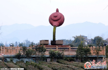 【重庆悬空茶壶遭吐槽 绿色水柱似粪便】重庆梁平县双桂街道一茶厂造了一座悬空茶壶雕塑,巨型茶壶雕塑悬空而建,底部悬空2米向下倒“茶”。但茶壶倒出的“水柱”因长满青苔而变 成“绿色水柱”,因此遭到了吐槽。视点君表示,“水柱”不好好清理的话,真的不影响销售么?