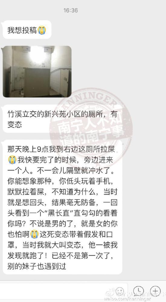 网友评论婷阿婷阿婷阿阿:终于被爆了!就是这个男的!我之前晚上在新兴苑要去厕所一进去就看到他当时厕所没有人我看到背影很奇怪啊这人居然长得比我还高头发怎么那么假然后一看他的脚不对劲马上跑出来!