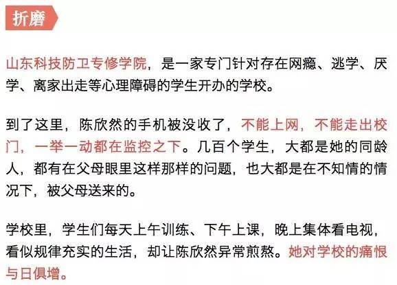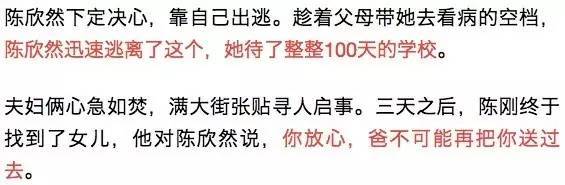 没过多久,陈欣然被父亲带来的教官强行接走,从大庆开往济南的途中,陈欣然试图逃跑,但被教官抓回。
