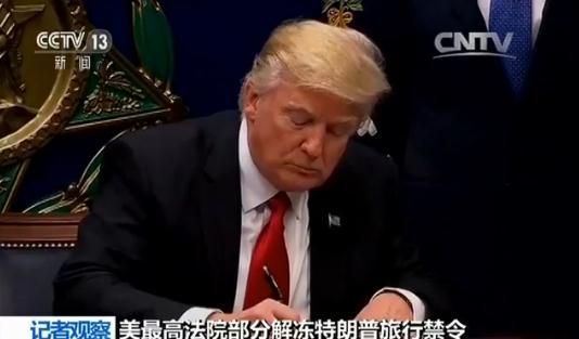 央视网消息:美国最高法院26号部分解冻特朗普政府3月签署的新版旅行禁令,对于这样的决定,美国分析人士认为,美国最高法院给了一个折中方案,特朗普获得了一个有点“缩水的”胜利。