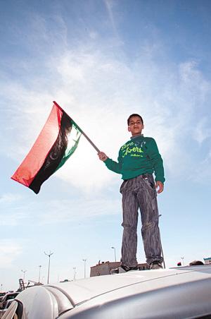 “卡扎菲一直要我们爱利比亚,以利比亚为荣,但我们做不到,但这次,我真真切切为自己是利比亚人感到骄傲。”志愿者法瑞斯指着那面红黑绿星月旗说道,这面1969年前王朝时代的旧国旗,成为利比亚一部分民众谋求“自由”的象征。