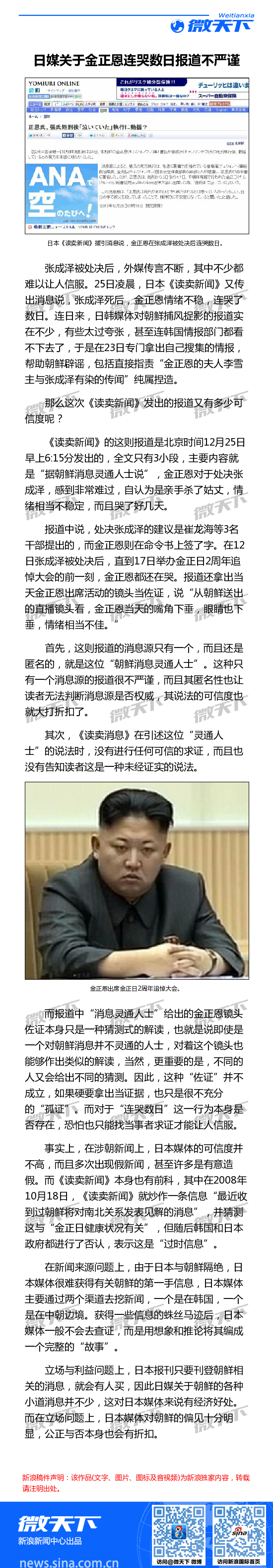 日媒关于金正恩连哭数日报道不严谨