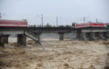 洪水冲垮宝成线一铁路桥