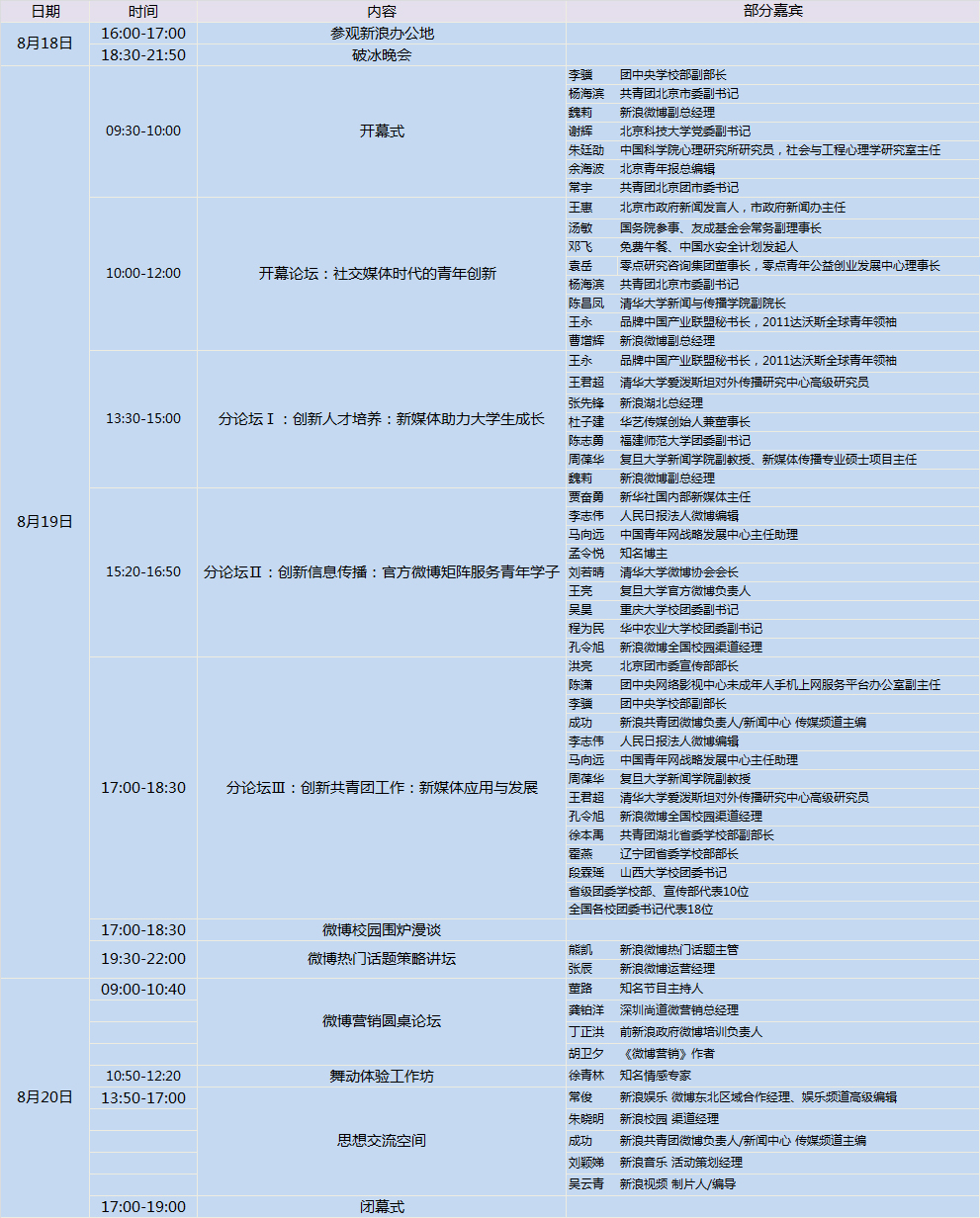 新浪微博全国校园渠道经理孔令旭 中国青年网战略发展中心主任助理马向远 知名博主孟令悦