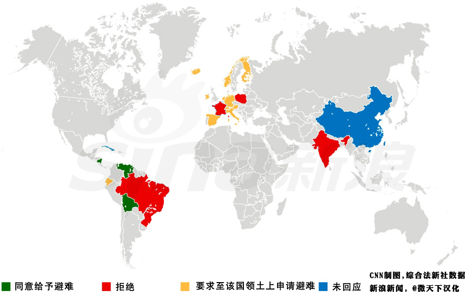 斯诺登泄密后藏身香港寻求庇护。美国国家安全局已向美国司法部申请对斯诺登的行为进行犯罪调查。 | |