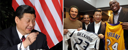 * 在美国的最后一晚,习近平抽出了50分钟,跟洛杉矶市长一起观看了一场湖人对太阳的NBA比赛,获赠了一件印有其英文字母的湖人队球衣。