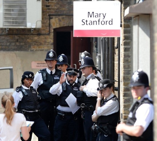 警察在医院外维持秩序。