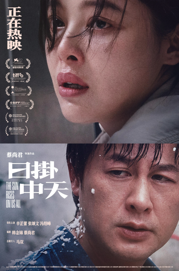 山雨欲来,风先满楼。《日掛中天》的风,就是一张张逐渐紧绷、坍塌乃至崩溃的脸。这些脸层层垒叠到最后,才迎来了最终的,被张颂文扯住头发,直面观众的那张,压抑痛苦到无法解脱的绝望之脸。