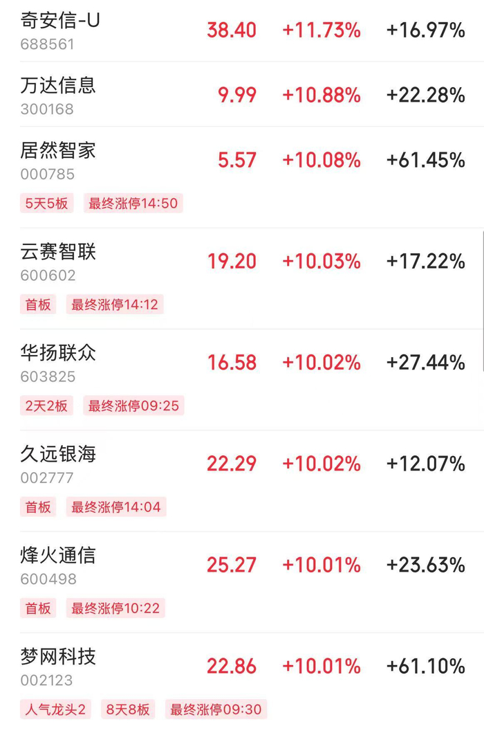 云计算、数据要素概念股表现活跃,神州数码等涨停。DeepSeek概念股走势分化,梦网科技8连板,美格智能接近跌停,并行科技等多股大幅冲高回落。
