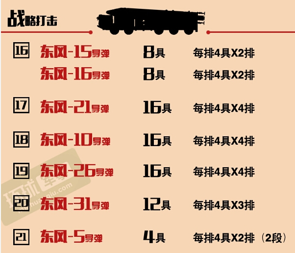 只有5日的电视画面中展示了发射中的带尾翼的导弹弹头。射程达1700公里的东风-21C中程弹道导弹最早于2007年对外披露,大多数报道称它携带的是一种较为简单的对地攻击机动式末端制导弹头。