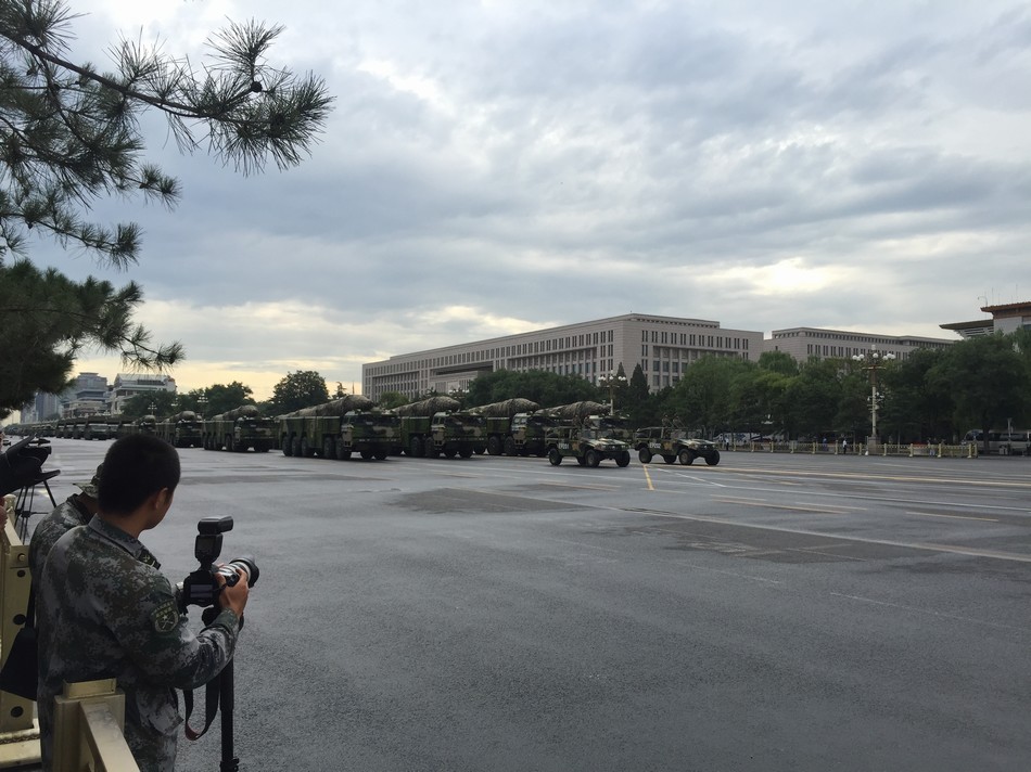 电视报道中展示的是一辆与东风-21C和东风-21D导弹配套的10轮导弹运输-起竖-发射车。无法看清发射车上装载的是哪种导弹,但12日的报道显示导弹末端具有新的缓冲构造,这种结构曾在去年9月3日阅兵式上现身的东风-21D导弹上看到过。