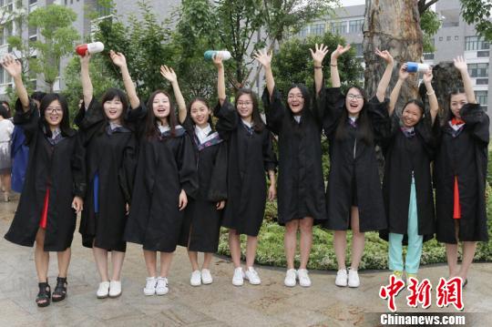 同宿舍九朵姐妹花手举“时光胶囊”欢呼毕业。 杨敬强 摄