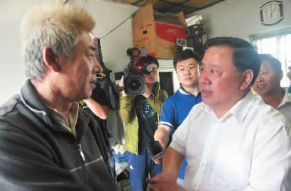 四平市委书记赵晓君(右)向宋巍的父亲致以亲切的问候 C4