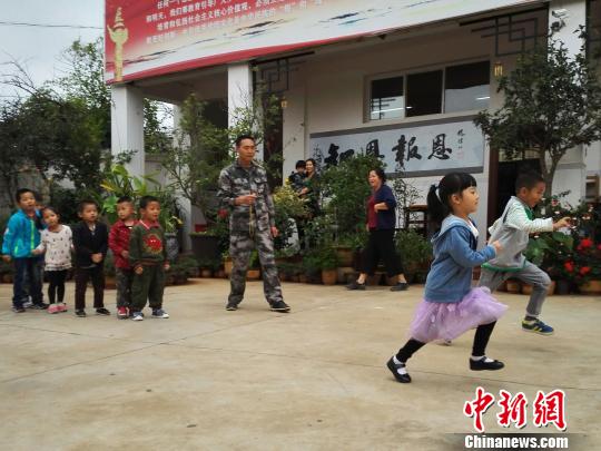 孩子们在生活老师的带领下做游戏。 胡远航 摄