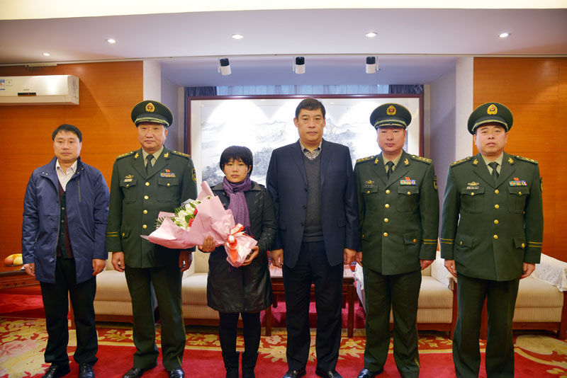 王锋获得第三届全国119消防奖先进个人称号,妻子潘品返回南阳时受到南阳领导的接见。