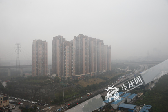 今天早上出现了浓雾,能见度一般。记者 石涛 摄
